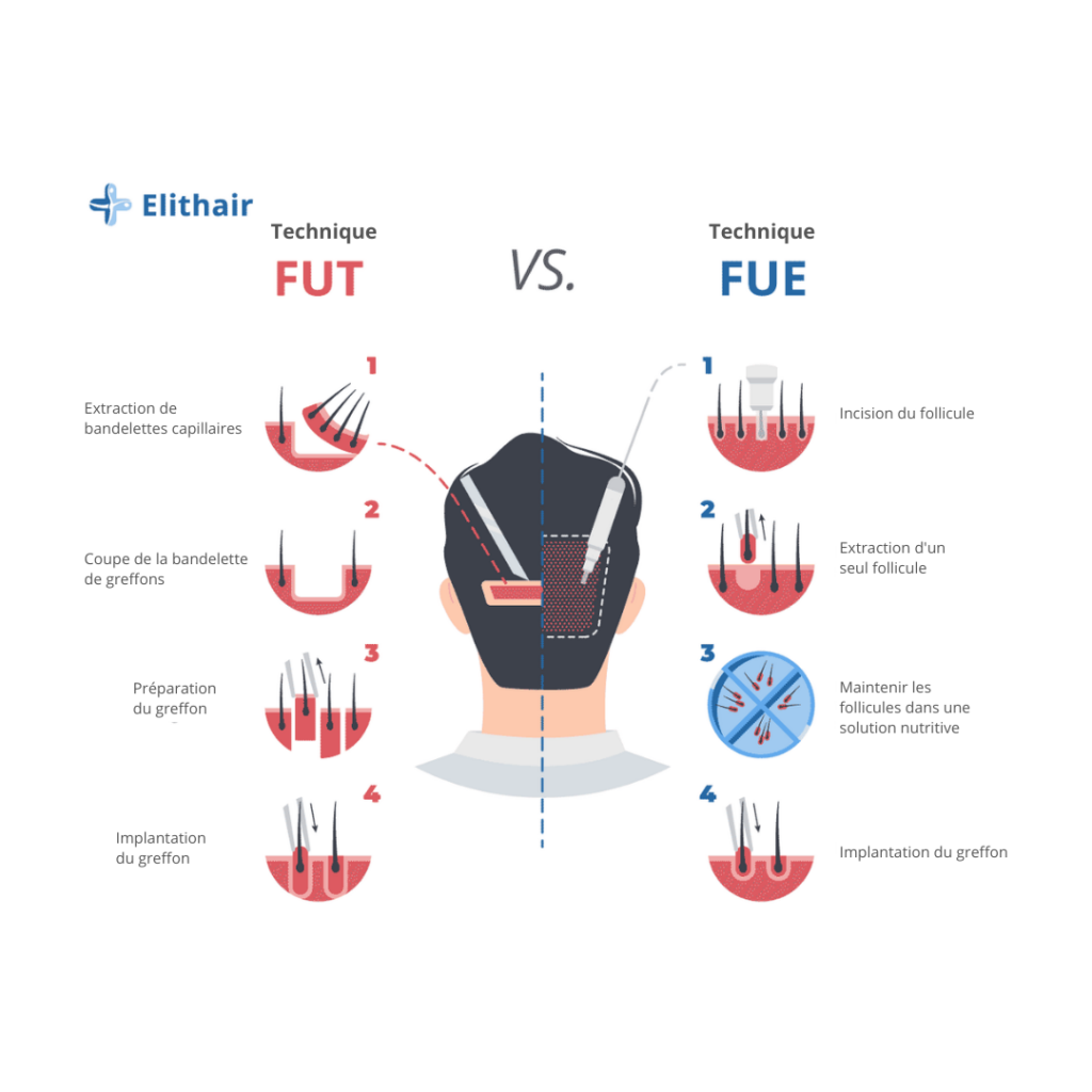 Cette technique laissait une cicatrice en forme de bandelette à l’arrière de la tête. Bien qu’elle puisse être couverte par des cheveux longs, elle peut rester aussi visible. Vous pouvez couvrir les cicatrices d’une transplantation d’unité folliculaire (FUT) avec une transplantation de cheveux utilisant la méthode FUE (extraction d’unité folliculaire).